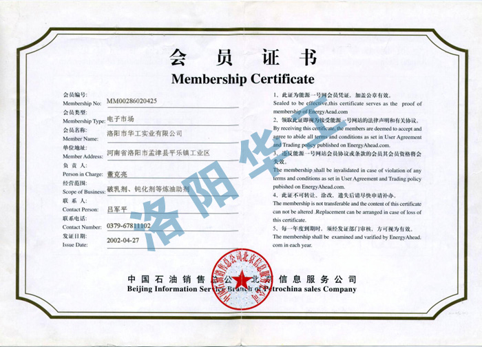 中國(guó)石油銷售會(huì)員證書
